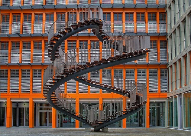 Impresionanta scara Umschreibung (inseamna a retranscrie) se afla in incinta companiei de contabilitate KPMG din Munchen si a fost inaugurata in 2004.